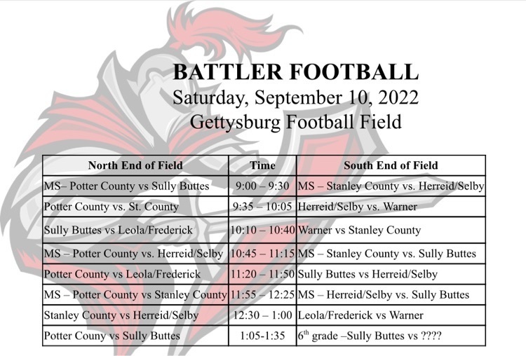 A decision on the Sully Buttes MS Football jamboree will be made tomorrow around 4:00. We hope this gives us ample time to evaluate the current and pending weather.