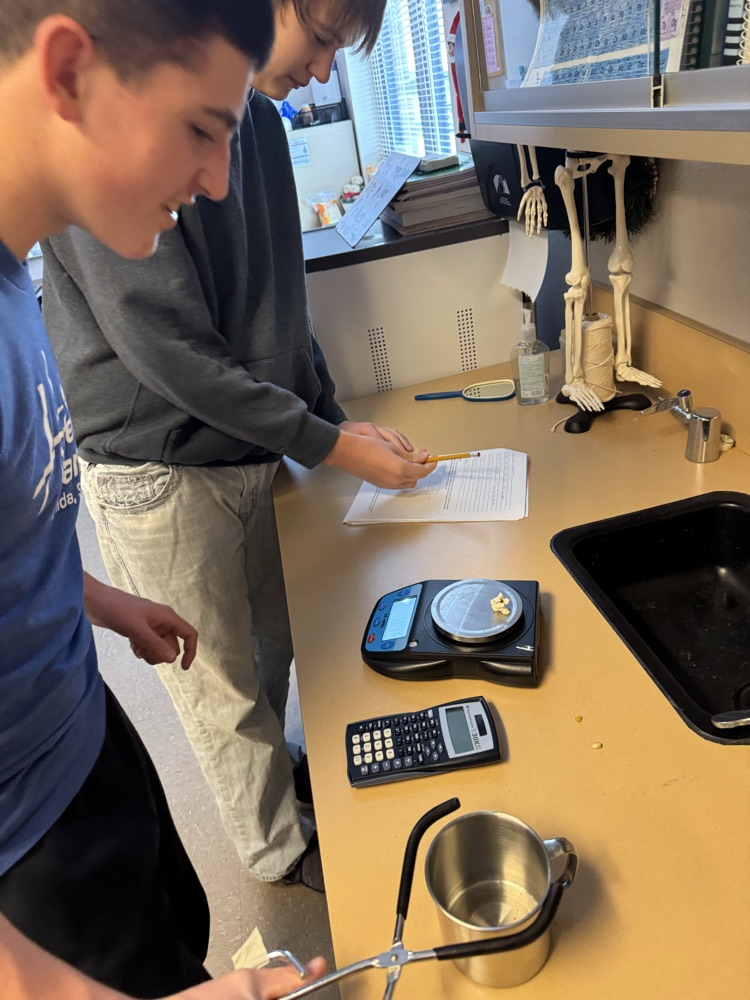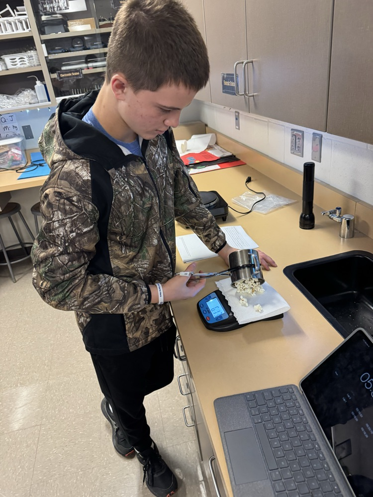 Physical science students had the opportunity to test the Law of Conservation of Matter using popcorn! They set up their own lab procedure to investigate how the mass of a popcorn kernel changes before and after popping.