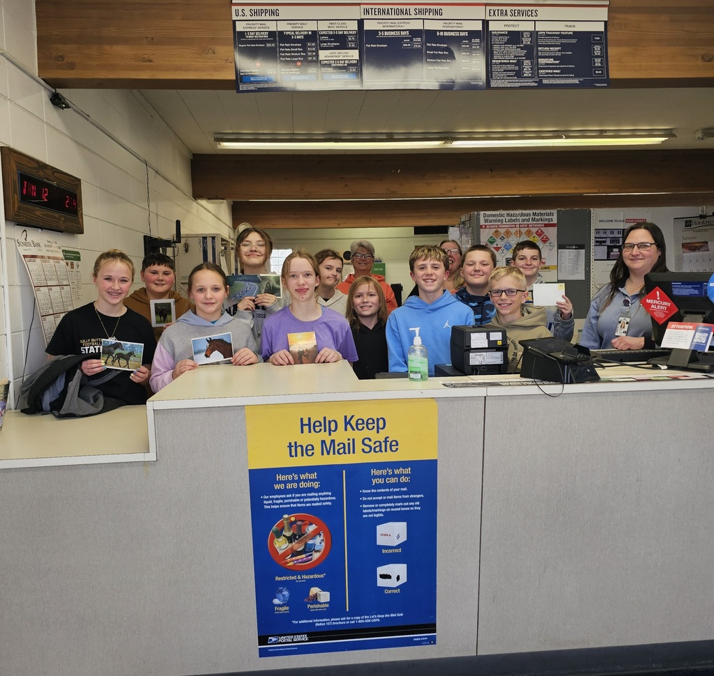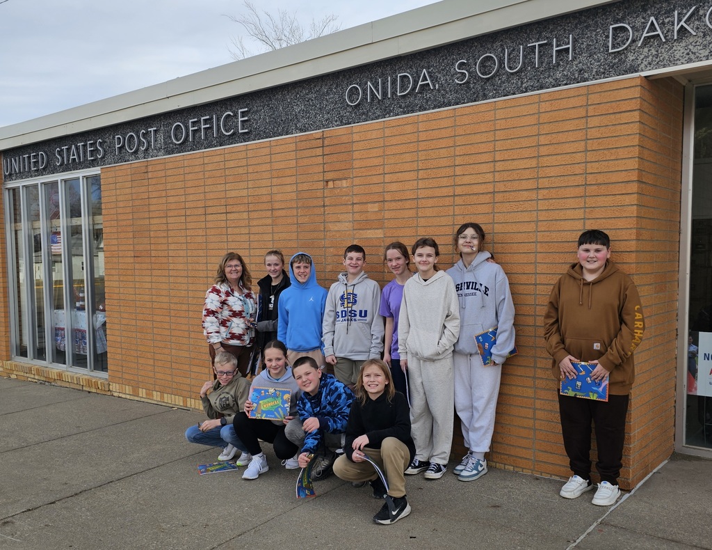 Sixth grade Life Management class started the new semester off by learning how to properly address envelopes. After writing a letter to someone within the school, they wrote a postcard to be mailed. They then took a field trip to the Onida post office where they learned about the postal service and where letters and packages go when being mailed. Thank you to Angela and Kimmie for hosting us!