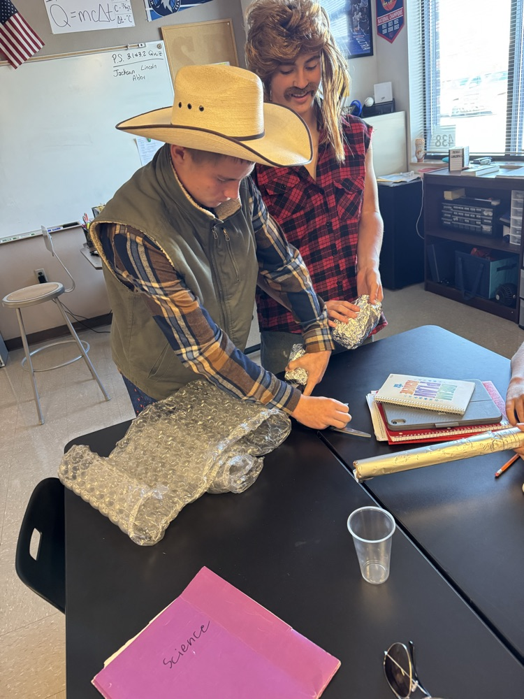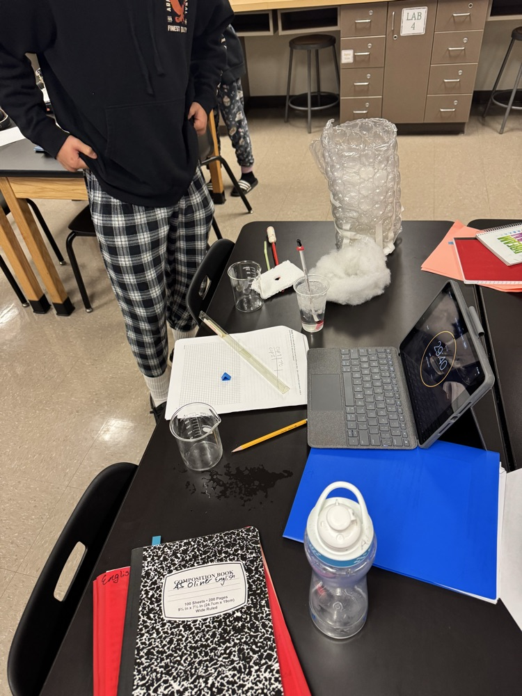 Physical science has been testing their design skills by creating their own thermally insulated cups to see what materials kept water the coldest. We got quite a few unique designs!