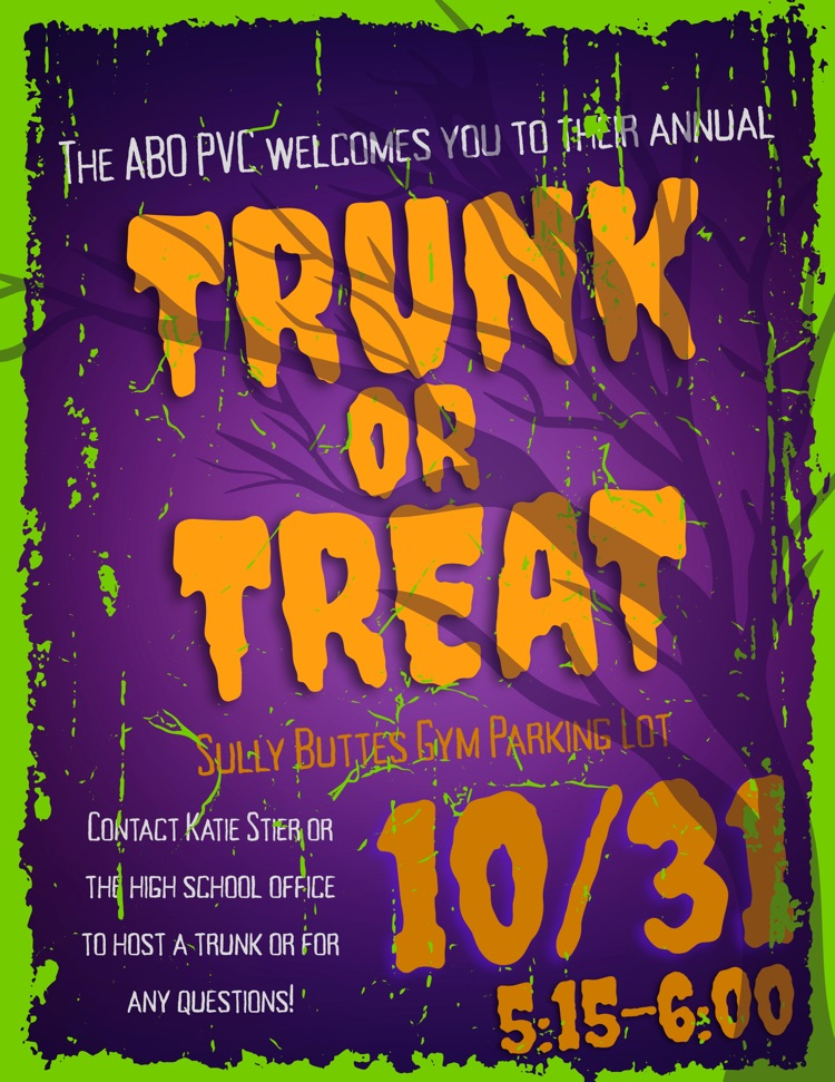 Charger Nation: don't forget about the PVC's Trunk or treat this Friday! Please contact the school if you are interested in "hosting" a spot. We hope to see you there!