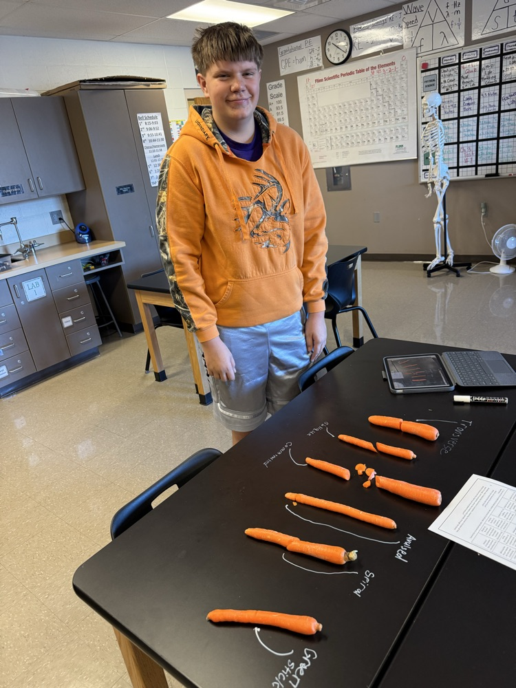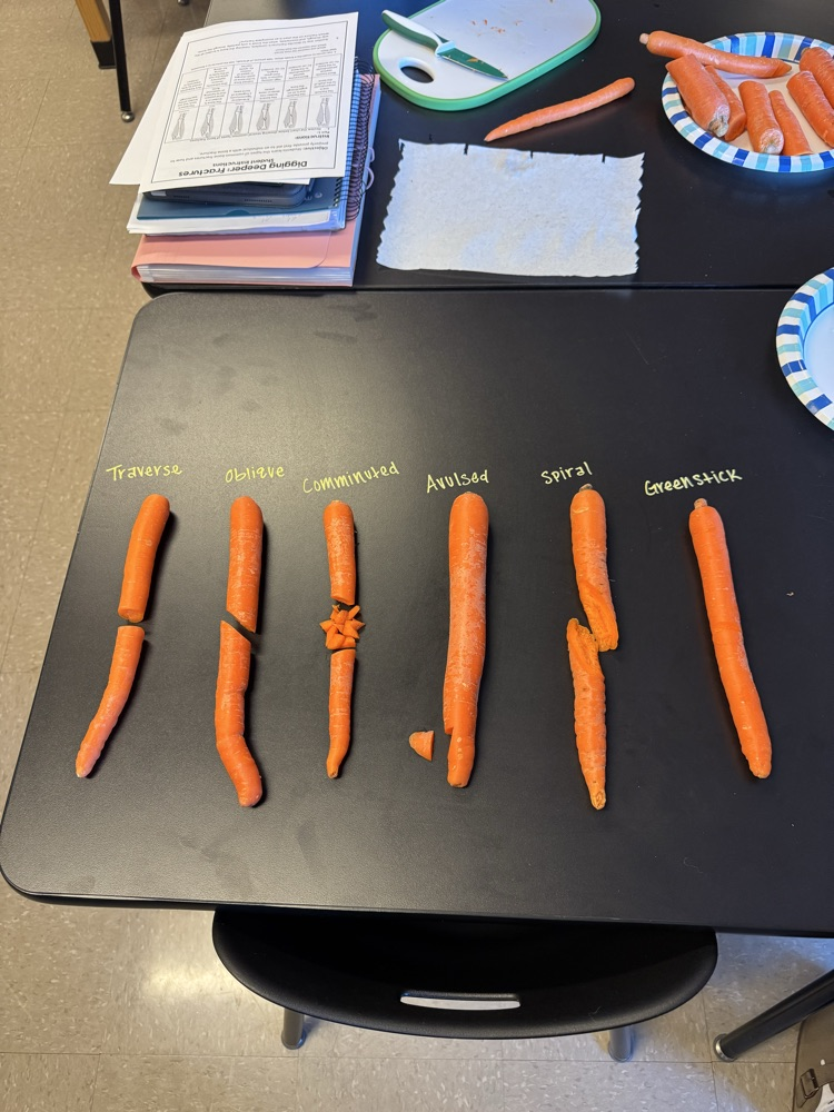 Advanced biology students spent some time modeling bone breaks using carrots.